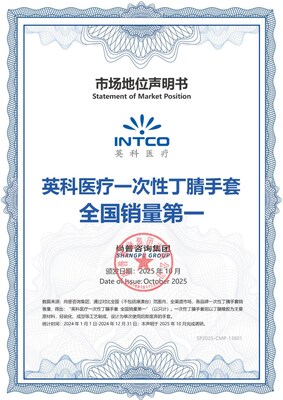 近日,英科医疗(300677.SZ)宣布获得知名市场研究机构尚普咨询集团颁发的 "一次性手套全国销量第一"和"一次性丁腈手套全国销量第一"市场地位声明书,全面印证了在国内一次性手套市场的领先地位。