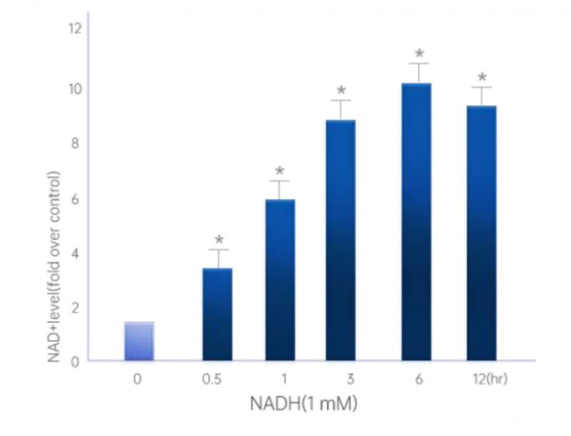 研究显示[1]:NADH30分钟内快速提升NAD+水平 另外,一项重磅权威研究结果显示[2]:NADH提升NAD+水平的效率是NMN的4倍。
