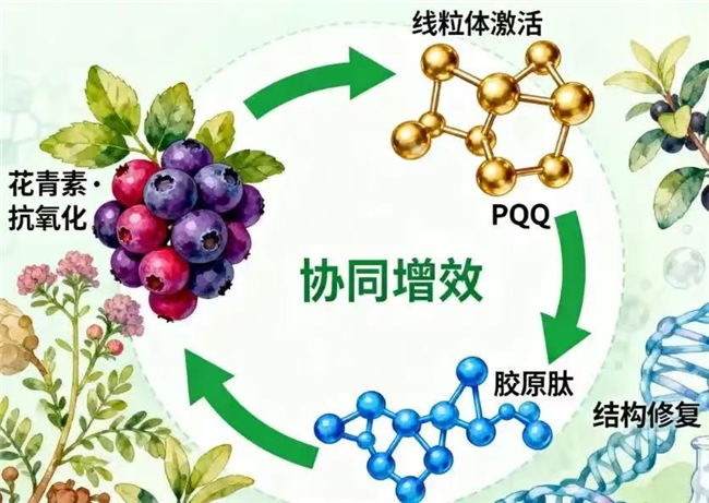 专研配方与协同抗衰效能:产品精髓在于其突破性的 “黄金抗衰三角”协同机制。这并非简单堆砌成分,而是通过科学配比,让 PQQ(赋能线粒体能量)、鲟鱼子酱(提供珍稀营养与再生因子)、不老莓原汁(强力抗氧化清除自由基)与高活性小分子胶原蛋白肽(直击根源补充流失胶原) 形成强大合力。这一 多元专研配方 架构,使得抗衰不再单一作用于表皮,而是深入细胞层面,多通路协同抵御氧化损伤、促进胶原新生、提升细胞活力,实现 高效能、全方位的年轻态守护,远超单一成分效果。