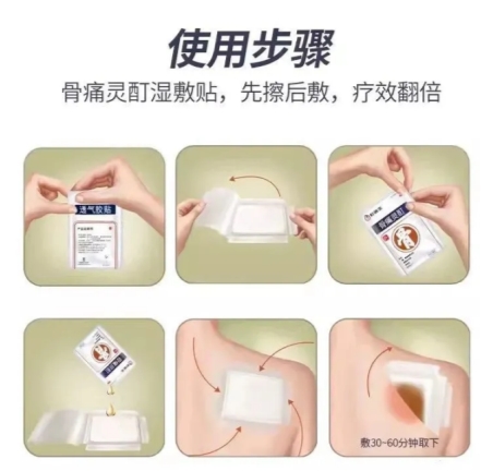 温经散寒:骨痛灵酊中的干姜等温热成分深入经络驱散寒气,缓解因寒冷引起的肩部僵硬和疼痛症状。 祛风活血:药物中的雪上一枝蒿、龙血竭等成分能够促进血液循环,消除血液瘀滞,从而起到祛风活血的效果。 通络止痛:骨痛灵酊中的乳香、没药等成分,能直接作用于肩部疼痛点,活血通络、消肿止痛,快速缓解肩周炎带来的剧烈疼痛,帮助恢复肩膀的活动能力。 与传统“药粉+基质”固体贴膏不同,骨痛灵酊采用“药液+胶贴”的创新的湿敷方式,小分子药液易穿透皮肤屏障,起效快,30~60分钟内有效成分便可被充分吸收。肩周炎患者每天只需要敷贴1小时,就能够持久镇痛,夜里安然入睡,不再忍受“肩”熬。 使用方法 使用方法也特别简单:贴敷前,先清洁肩部关节部位的皮肤,确保皮肤洁净;接着取小部分药液精华置于手心,在疼痛处按擦2-3分钟以打开毛孔,为后续药液吸收创造条件;随后取出透气胶贴,将剩余药液均匀倒入敷带中央的衬垫区,对准疼痛部位平整贴敷;敷贴30分钟左右可感受到疼痛有所缓解,待1小时后药液全部渗透,取下胶贴即可。每日一贴,持久镇痛。