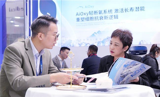 思想领航: 论坛共鸣-激活长寿潜能新路径 展会次日下午,由IHHT健康科技联盟主办的主题论坛《轻断氧-激活长寿潜能的新路径》上,AIOXY品牌大使应邀发表演讲,围绕行业关注与用户需求,系统阐述以下观点: 解读“轻断氧”与传统“轻断食”之间的协同作用,提出 “氧代谢调控是长寿干预的重要方向”; 分享 IHHT技术在临床应用中与端粒长度的观察数据,证实其在延缓细胞老化方面的潜力; 提出“体检+IHHT干预+长期监测”相结合的一体化健康管理新方式。 论坛现场交流氛围积极,会场专家与权威代表认为,AIOXY轻断氧所提出的健康理念,正逐步从技术概念发展为可执行的系统方案,有助于推动健康管理迈向数据化、个性化的发展阶段,为康养产业进步提供支持。 产品亮点: 氧护黑科技凭什么引爆全场 AiOxy智能设备,通过精准、可控的间歇性高低氧环境模拟,实时监测用户心率、呼吸频率等生理数据,自动识别身体状态,智能调节吸入氧浓度,形成个性化的“低氧-高氧”呼吸节律循环。 该技术基于2019年诺贝尔生理学或医学奖所揭示的细胞机制,在“轻断氧”的温和刺激下,身体启动“细胞自噬”过程,促进细胞对氧气的高效利用,促进红细胞生成和血氧携带效率的提升,从而有助于整体能量代谢与心肺功能的调节。结合贴近场景使用的7大应用模式,该技术为健康生活提供了多维度支持。
