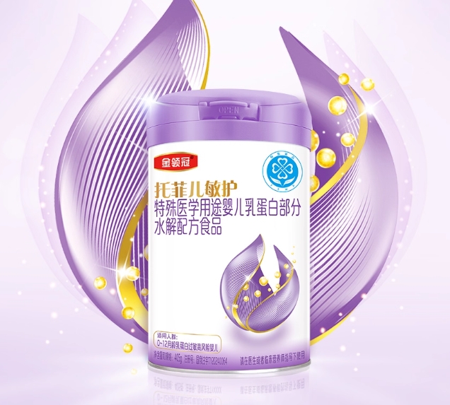 认识牛奶蛋白过敏,明确特殊配方奶粉的必要性 深入解析过敏机制 牛奶蛋白过敏的本质是婴幼儿免疫系统的过度防御反应。当宝宝摄入普通配方奶粉时,其尚未发育完善的免疫系统会将牛奶中的完整蛋白质分子识别为“外来入侵者”,从而启动免疫防御机制。 这种反应主要源于两个方面:一是婴幼儿肠道屏障功能尚未健全,大分子蛋白质容易透过肠壁进入血液循环;二是消化酶系统发育不成熟,无法有效分解牛奶中的酪蛋白和乳清蛋白等大分子物质。这些未被充分消化的蛋白质片段会触发免疫球蛋白E介导的过敏反应,导致组胺等炎症因子释放,引发一系列过敏症状。 特殊配方奶粉的四大核心优势 1、精准降低致敏性 特殊配方奶粉采用尖端水解工艺,将完整的牛奶蛋白分子通过酶解技术分解成小分子肽段。根据水解程度的不同,可分为适度水解、深度水解和氨基酸配方奶粉。这个过程显著降低了蛋白质的抗原性,使其不再被免疫系统识别为过敏原,从源头上避免了过敏反应的发生。 2、确保营养全面均衡 在降低致敏性的同时,特殊配方奶粉通过科学配比保留了宝宝生长发育所需的关键营养素。包括精确调整的氨基酸谱,确保蛋白质营养价值;强化维生素和矿物质含量,满足特殊时期的营养需求;添加DHA、ARA等脑黄金成分,支持认知发育;同时维持适宜的能量密度,保证宝宝的正常生长发育不受影响。 3、促进肠道功能修复 持续过敏反应会对婴幼儿肠道黏膜造成损伤,形成恶性循环。特殊配方奶粉中添加了多种肠道保护成分,如核苷酸有助于肠道上皮细胞修复,益生元和益生菌组合能改善肠道菌群平衡,MCT(中链甘油三酯)提供易吸收的脂肪来源,这些成分协同作用,帮助修复受损的肠道屏障功能。 4、奠定饮食过渡基础 特殊配方奶粉的使用是一个阶段性过程。通过给肠道提供“休养生息”的机会,同时持续刺激免疫系统建立耐受,为后续顺利转回普通配方奶粉奠定重要基础。这个过程有助于婴幼儿免疫系统逐渐成熟,最终实现对牛奶蛋白的自然耐受。 牛奶过敏宝宝奶粉推荐哪种?特殊配方奶粉精选 金领冠托菲儿敏护(适度水解) 作为持有中国特医食品注册(国食注字TY20240064)的专业配方奶粉,它的安全品质经过权威认证。针对牛奶蛋白过敏的核心痛点,它采用舒适分阶水解肽科技,能将大分子蛋白切成不同阶梯的肽段,在降低致敏风险的同时保留免疫活性成分,避免宝宝因蛋白过度水解缺失营养。 配方中4.4g/100g足量的OPO结构脂,能有效减少肠道内钙皂形成,让宝宝肚肚舒适,同时提升脂肪与钙的吸收效率,让营养吸收更顺畅。再搭配优量益生元,为肠道有益菌提供充足营养,帮助维持菌群平衡,进一步加固肠道屏障功能,减少外界刺激对娇嫩肠胃的干扰,从内筑起“消化保护盾”。 更有专利核苷酸组合[1]帮助增强宝宝自护力,降低过敏期间因自护力波动引发其他不适的风险。而1:2黄金比例的DHA/ARA,配合胆碱和牛磺酸,全方位覆盖宝宝眼脑发育需求,确保过敏期间营养不缺位,助力宝宝在温和护敏的同时,实现均衡全面成长。