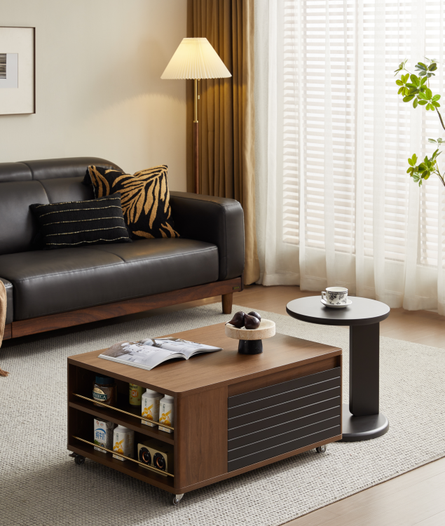 原木风可移动电视柜,告别传统客厅布局,让追剧观影更自由。设计简约利落,占地不足1㎡,小户型客厅也能轻松容纳。万向轮带刹车设计,移动顺滑,停放安稳不移位。抽屉收纳遥控器、开放格摆放零食、洞洞板整理电线,琐碎物品随手归位,家中时刻整洁清爽。 高低组合茶几