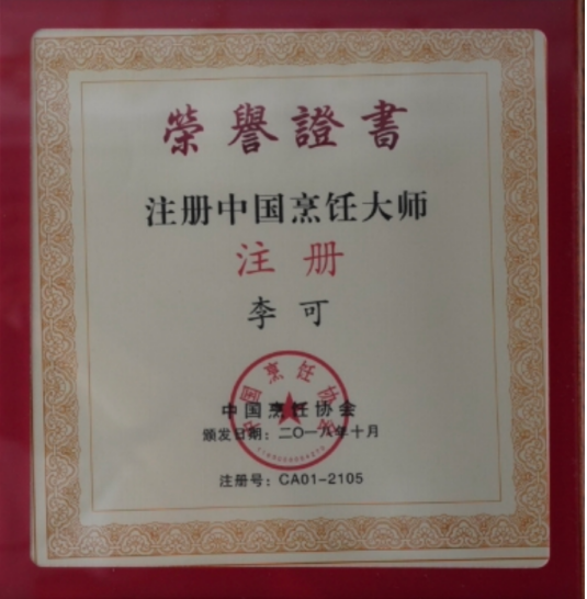 淬艺:千淘万漉磨真功,刀火淬炼百味魂 1994年,怀揣着对烹饪行业的赤诚热爱,李可踏入餐饮行业,从此与刀砧为伴,与油火为邻。彼时的他,还是个懵懂青涩的少年,只能从最基础的后厨杂役做起。每日清晨六点,他便抵达后厨,清理食材残渣、备好烹饪器具、擦拭灶台,为大厨打理好一切;深夜时分,又逐一检查水电消防,筹备次日物料。数年的晨兴理秽,夜寐筹谋,只为能多学一招半式。“厨师讲究学三年、做三年、学学做做又三年,没有十年八年的沉淀,难以上灶掌勺”。李可说道。天道酬勤这句至理名言,他始终铭记于心,并用实际行动践行到底。 为夯实基本功,李可冬练三九、夏练三伏。切配时,力求每一片食材厚薄均匀、长短一致,手指被刀刃划伤是常事,却从未停下练习的脚步;颠勺时,常常练到手臂酸痛难忍,但仍然咬牙坚持,直至翻炒自如、火候精准。对每一味食材的肌理、每一种调料的配比、每一个火候的把控,他都反复揣摩,用心记忆。为精进刀工,他对着萝卜、土豆反复练习切丝、切片、雕花,累计消耗的食材不下千斤。 千淘万漉虽辛苦,吹尽狂沙始到金。数十年的潜心磨砺,让李可的厨艺日臻精湛。他精通官府菜、鲁菜、粤菜及中西合璧菜,尤以面塑雕饰、果蔬雕刻、冷荤摆盘见长,烹饪风格兼具“传统底蕴”与“创新活力”,注重“制作简约、装盘雅致、食用便捷”的实用创新。凭借精湛的厨艺和精益求精的执着精神,李可先后获得中国注册烹饪大师、北京烹饪大师、高级烹饪技师、中华金厨奖、中国名厨、全国最佳厨师、全国青年技术能手、全国优秀厨师等称号,并斩获全国第六届烹饪技能大赛总冠军、世界厨王争霸赛冠军、中华金厨奖等诸多重量级荣誉,担任世烹联名厨委副秘书长、国际大赛评委,成为行业公认的“全能型烹饪大师”,用刀火淬炼出属于自己的百味人生。