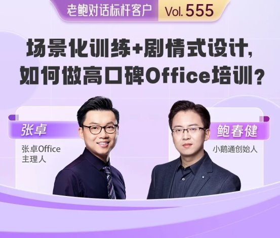 在数字化浪潮推动个体创业升级的当下,专业领域从业者如何凭借深耕与创新走出差异化发展之路?小鹅通创始人鲍春健发起的《老鲍对话标杆客户》栏目,始终聚焦客户实战经验,挖掘可复用的成长路径。近期,栏目对话深耕办公软件培训 18 年的张卓,揭秘其从企业培训讲师转型自媒体 IP,并依托小鹅通实现线上线下融合运营、构建长期事业的发展密码。