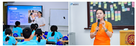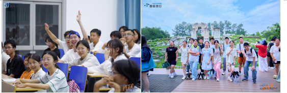 02 既是引路人,也是同行者 旅程的底气,来源于扎实的资源与真诚的陪伴。 与许多游学项目不同,“朋辈行·圆梦计划”坚持与高校、企业进行深度合作。同学们走进的是本校学生日常学习的讲堂,课程由高校教师亲自设计引领,企业与机构的参访包含了完整的动线与原理讲解。 而每一段行程真正的灵魂,是那群年轻的朋辈导师。 他们来自清华、北大等学府,身上有“状元”、“竞赛”的标签,但更重要的,他们是真实可亲的学长姐。朴香丹、王鲁彬、陈敬星、冯逸帆、肖威……每一个名字背后,都有一段如何面对课业、选择与迷茫的故事。他们不仅在行程中分享经验,更在夜晚的闲聊里,倾听少年们未曾说出口的困惑。