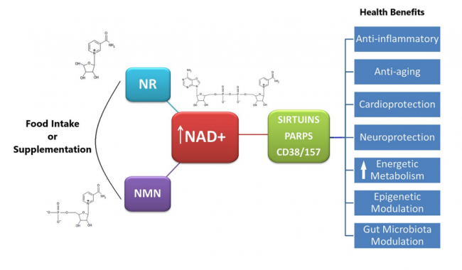 二、机制:不仅仅是“补”,更是“调节” 除了作为NAD+的前体参与能量代谢,NMN在生理调节层面展现出更深层的价值,特别是在抗炎与免疫调节方面。 抗炎机制:Liu等人(2021)发表在《FrontiersinMolecularBiosciences》的研究提供了分子层面的证据。实验显示,NMN治疗(500μM)能有效缓解LPS诱导的炎症反应。 作用路径:其核心机制在于通过COX-2-PGE2信号轴发挥作用。NMN能够显著下调环氧化酶-2(COX-2)的表达,从而抑制关键促炎因子IL-6和IL-1β的mRNA表达及蛋白分泌,并降低前列腺素E2(PGE2)的水平。 科学意义:这一发现解释了为何NMN不仅能改善代谢指标,还对糖尿病、阿尔茨海默病及内皮功能障碍等与慢性炎症密切相关的老年性疾病具有潜在的保护作用。它通过恢复机体的稳态平衡,实现由内而外的年轻化。