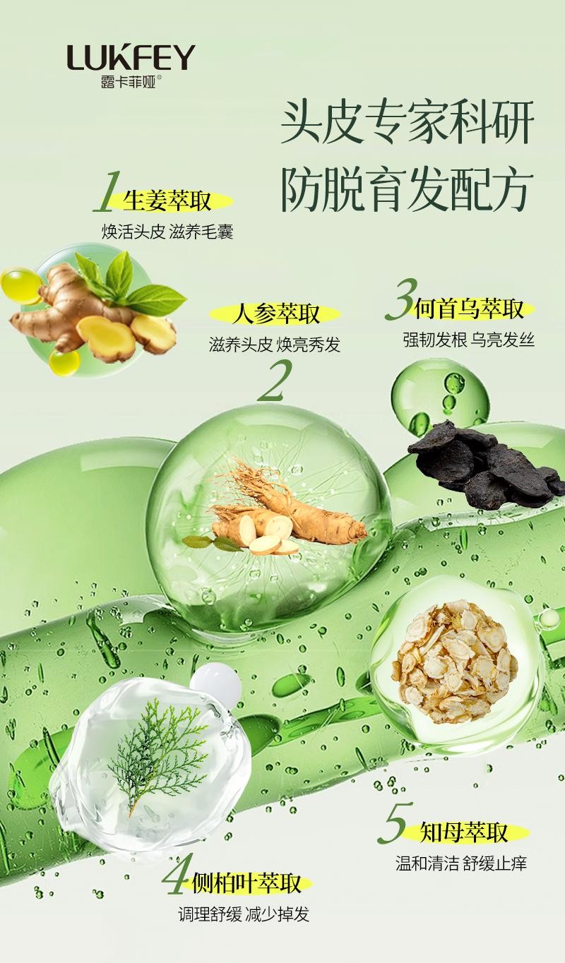 配方解析:男女通用的科学配比 露卡菲娅防脱精华的男女通用特性源于其配方设计的科学考量。传统防脱产品往往针对特定性别的脱发机理,而露卡菲娅则选择了更普适的作用路径: 根源抗脱技术:独家专利专研生发因子是核心武器,能精准抑制 DHT(脱发元凶)对毛囊的侵蚀,实测可将毛囊周围 DHT 浓度降低 68%,从源头切断脱发链条。搭配纳米级人参、何首乌等中草药精粹,形成防脱育发+ 滋养修护双重屏障,不管是熬夜脱发、脂溢性脱发还是产后脱发,都能精准覆盖。 毛囊激活配方:采用小分子渗透科技,活性成分能穿透头皮角质层,给休眠的毛囊注入营养。唤醒萎缩毛囊,临床数据显示,使用 4 周后毛囊活性提升 57%,6 周就能看到发缝冒起细软绒毛,且新生发丝比普通产品粗 30%。 温和修护机制:经 300 人敏感肌测试,无一人出现刺激反应。不含激素、香精等刺激性成分,连头皮长痘、泛红的敏感肌都能安心用。