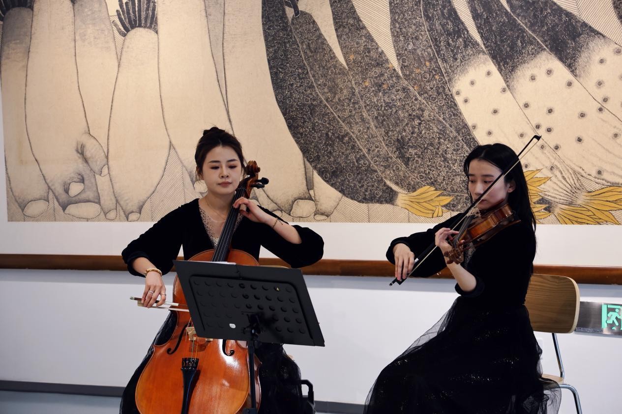 展览开幕当日,枫美术馆还同步举办了主题为《芦山弦响》——李添甜&鲁俞彤大提琴/小提琴二重奏音乐会。由据木工坊室内乐大提琴手李添甜与小提琴演奏家、山东音协会员鲁俞彤联袂呈现。演出以弦乐二重奏的形式,与水墨展览形成跨艺术门类的现场互动,为观众带来融合视觉与听觉的多重艺术体验。 通过展览与音乐的同步呈现,枫美术馆进一步拓展了艺术展示的边界,强化了空间、作品与观众之间的联结。 |