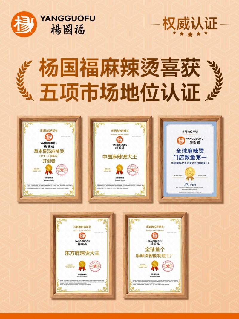 一碗热辣鲜香的麻辣烫,如何从东北小城的街边摊,成长为风靡全球的中式餐饮代表?杨国福集团用二十二年的深耕,给出了答案。 2026年初,杨国福集团接连斩获行业重磅认可。权威机构尚普咨询集团授予其“中国麻辣烫大王”“东方麻辣烫大王”等四项认证,覆盖市场规模、产品创新与产业制造三大维度。与此同时,集团在上海成功挑战“最大规模的麻辣烫品鉴活动”吉尼斯世界纪录,258位挑战者共同见证这一高光时刻。而在此之前,杨国福已摘得2025中国餐饮创新头部品牌榜“快餐品类TOP10”“中餐出海标杆TOP10”两项大奖,创始人杨国福先生也获评“年度先锋人物”。