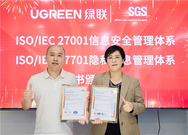 数据显示,代言人合作后,绿联在随后的618购物节期间实现了多平台销售增长,其中NAS私有云系列产品获得京东、天猫双平台销售额与销量双冠军,代言同款礼盒登顶天猫移动电源榜单。这一系列市场反馈,验证了绿联品牌升级策略的有效性。 2025年,绿联科技在技术创新与可持续发展领域获得多项权威认可。3月,绿联六款产品获得德国iF设计奖,涵盖便携式固态硬盘、NAS私有云、快充移动电源等品类。在信息安全领域,绿联作为NAS行业首家通过SGS ISO/IEC 27001信息安全管理体系与ISO/IEC 27701隐私信息管理体系双认证的品牌,建立起符合国际标准的数据安全防护体系。ESG实践方面,绿联先后获得华证指数AA评级、证券之星"产品责任奖"及"2025科技企业ESG先锋奖"。弗若斯特沙利文基于市场调研数据,授予绿联"消费级NAS产品全国销量第一"的市场地位声明。