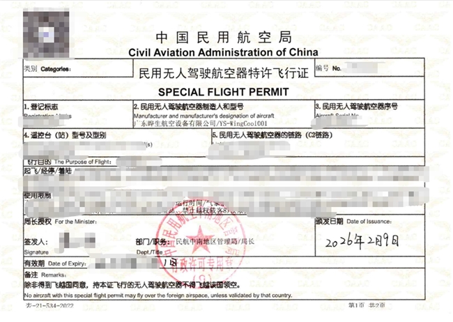 荣获三证,逐梦低空 2026年2月,晔生航空自主研发成果捷报频传,接连收获三张由中国民用航空局颁发的超轻型eVTOL特许飞行证! 2月5日,“云翼WingWing、云舰WingShip”两款超轻型eVTOL率先获证。紧随其后,2月9日,水陆双栖超轻型eVTOL“云鲲WingCool”也成功获证!至此,晔生航空共获三张超轻型eVTOL特许飞行证,这也是全球首家同时获得三张超轻型eVTOL特许飞行证的eVTOL整机厂家。