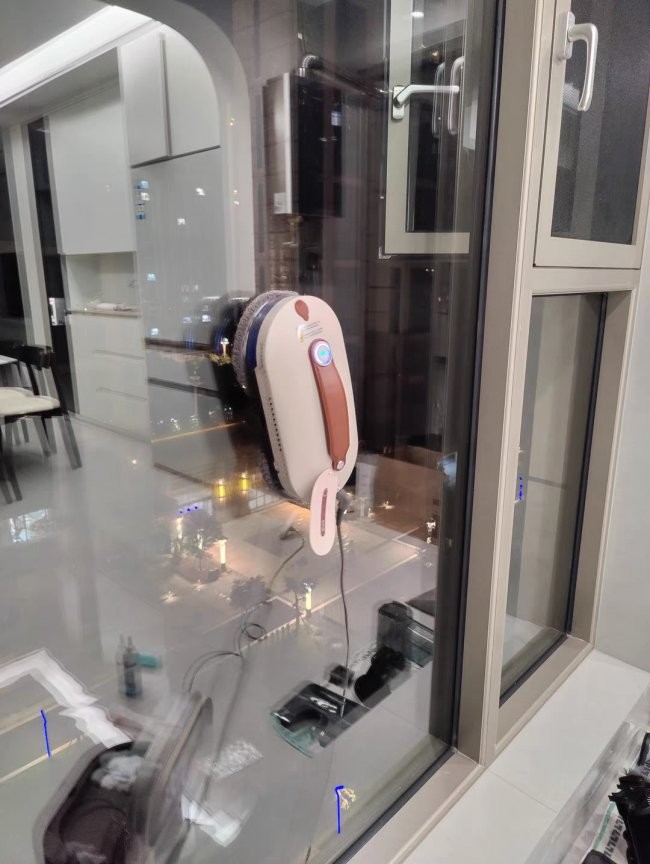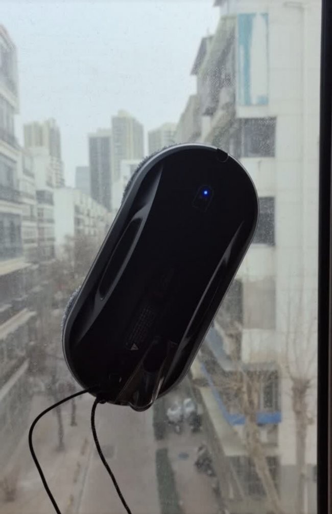 玻妞(Hobot)388 玻妞388采用了经典的双盘扭擦技术,通过两个清洁盘的交替旋转来模拟人手擦拭,对于局部较厚的污垢有一定的清洁效果。不过,它在使用时需要全程连接电源线,且在面对大面积窗户时,依然需要人工频繁更换或清洗抹布,自动化程度相对有限。
