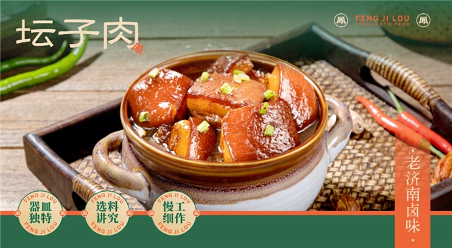 鲜明的记忆点更让其深入人心,作为鲁菜代表性菜品,凤集楼坛子肉以“单品类强记忆”成为品牌标识,区别于现代餐饮的同质化品类布局。无论是老济南人心中的烟火味,还是新食客对地方特色美食的探索欲,都能通过这道坛子肉形成情感与味觉的双重共鸣,让品牌在消费市场中拥有独特的辨识度。 现代运营体系,解锁盈利新可能 凤集楼的焕新,并非单纯的传统复刻,而是在完整保留坛子肉工艺精髓的前提下,打造了一套系统化的现代化运营体系。 其运营效率的核心根基,在于“新鲜现炒+一酱成菜”的双轨融合模式,核心酱料由自有生产基地统一熬制,严格遵循百年配方锁定坛肉精髓,门店仅需现炒配合特制酱料即可成菜,既保留现制菜品的锅气感,又实现“无需大厨”的标准化操作,为门店运营提效打下基础。 在基础操作层面,凤集楼打造了高效的标准化运营体系,总部制定专业SOP手册将复杂烹饪工序拆解为简单流程,新手经短期培训即可快速上手;同时与资质可靠的优质供应商建立长期合作,搭建完善的供应链品控体系,从原料选品到物流配送全程严格把控,既保障了坛肉等菜品的口味稳定,又从源头实现了成本优化。