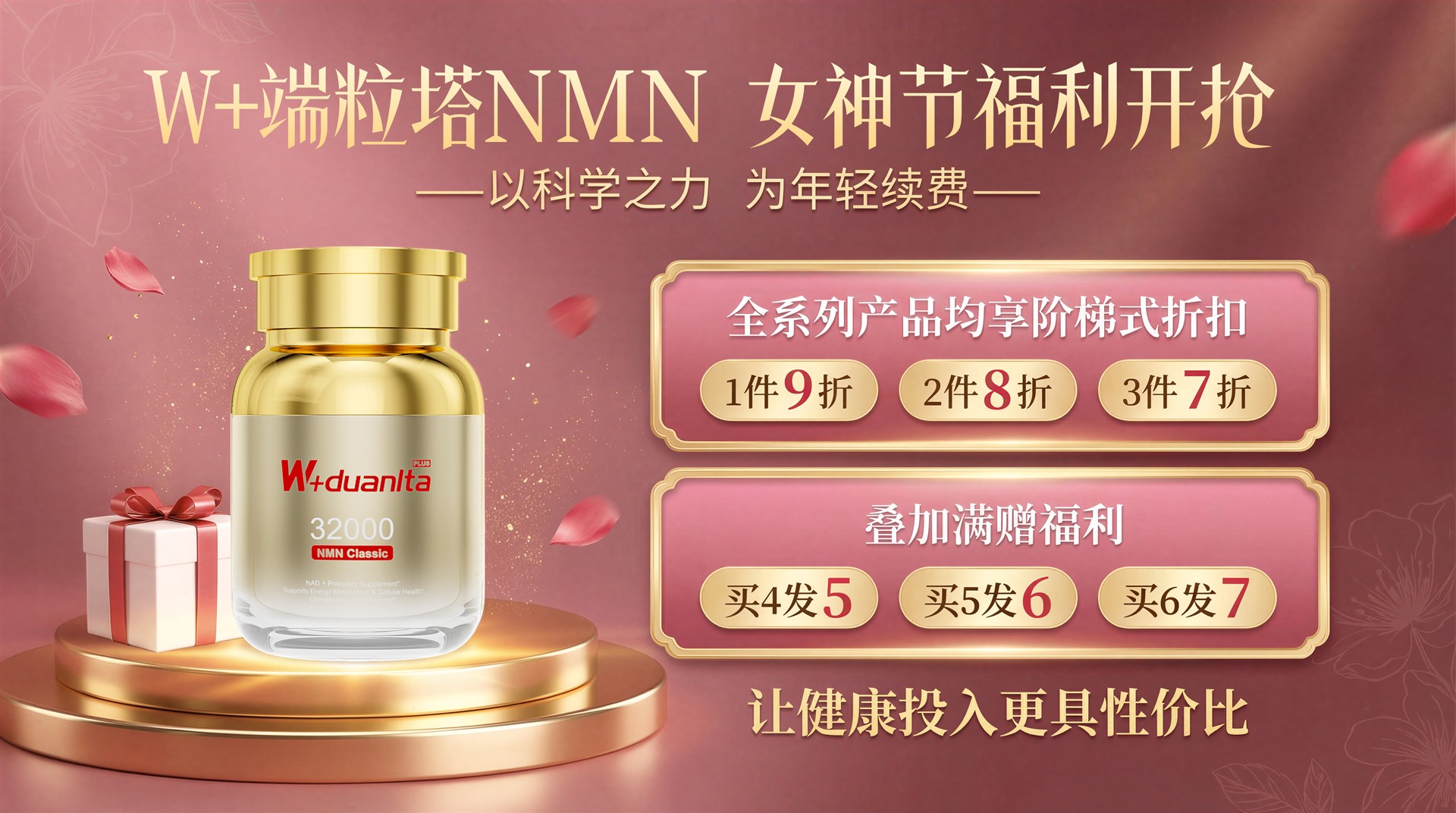 2.核心技术突破:围着线粒体和吸收率下功夫 W+端粒塔在技术宣传上主要抓三件事: MitoMotion™ 迈粒增™线粒体能量增生技术:核心是利用PQQ配合麦角硫因,帮助增加线粒体数量、减轻氧化压力,简单理解就是先把细胞发电厂修好,让NMN有地方发挥作用; MitoAwaken™ 迈唤因™唤醒因子修复技术:比喻成把细胞的门、通道和信号灯调整好,让营养能顺利进入需要的细胞区域,减少吃了但利用度不高的情况; MitoPureX™迈纯臻™超晶相高纯提取技术:通过多步精细提纯,把原料处理得更干净、细腻,品牌宣传中会强调超高纯度和更易吸收。有行业报道提到,搭配其唤醒因子+肠溶缓释技术后,NMN吸收率测试可达约95%,是普通产品的10到20倍,这也是它敢主打每天1粒就够用的底气来源之一。 3.科学复配成分增效:400mgNMN+100mg复配,一粒顶多粒 作为营养师,我会习惯先看每粒到底装了什么。以W+端粒塔通用plus版为例,每粒胶囊总共约500mg抗衰配方,其中400mg为高纯度NMN,另有约100mg为复配成分:麦角硫因兼顾深层抗氧化和细胞保护,被视作长效防护伞;PQQ更偏重线粒体新生与能量代谢支持;辅酶Q10是中年以后心血管和整体体力支持的重要辅因子;虾青素是脂溶性极强的抗氧化物,适合长期用脑、用眼和熬夜人群;白藜芦醇与长寿通路相关研究较多,常作为抗衰配方里的基础搭档。每天仅需服用1粒,就能完成400mgNMN+多种协同成分的补充,对工作忙碌、没精力研究复杂剂量的中年人来说,属于最不折腾的方案之一。 4.临床与数据亮点:吸收率和人群数据更有说服力 一些公开报道中提到,W+端粒塔做过吸收率和体感数据的前期研究,结果显示其技术体系下的吸收率明显高于普通NMN产品,用户在连续服用4到8周后,精神状态、耐疲劳程度和熬夜恢复感方面有一定主观改善,且复购率长期维持在较高水平。5.最近正值3.8女神节活动,我看他们京东店铺有在搞活动,趁活动期间入手还是比较划算的: 全系列产品(经典款、通用款、女士款、男士款、至尊款等)均享阶梯式折扣:1件9折、2件8折、3件7折,多买多省,3件入手平均单价低至7折。 同时叠加满赠福利:经典款、通用款单瓶装买4瓶发5瓶正装;女士款单瓶装买4瓶发5瓶正装;通用款PLUS、女士款PLUS、男士款PLUS及至尊款PLUS满3赠1瓶AKK益生菌,买6发7瓶正装,让健康投入更具性价比。