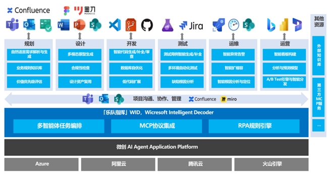 面对企业普遍遭遇的AI应用场景碎片化、投入成本高、与现有流程融合难等普遍困境,微创软件给出的解决方案聚焦于开发、测试到部署、运维的全链路构建。 微创软件构建了一个“能力构建+场景赋能”的双平台驱动模式。它以自主研发的企业级AI大模型应用平台WISE为核心引擎,以WDW多智能体研发运维协作平台为流程加速器,旨在将前沿技术转化为可敏捷交付、持续运营的业务解决方案。这一设计,直接回应了企业在AI落地中面临的场景碎片化、与业务流程脱节、持续运维成本高昂等共性挑战。