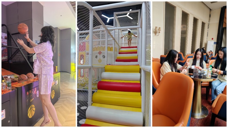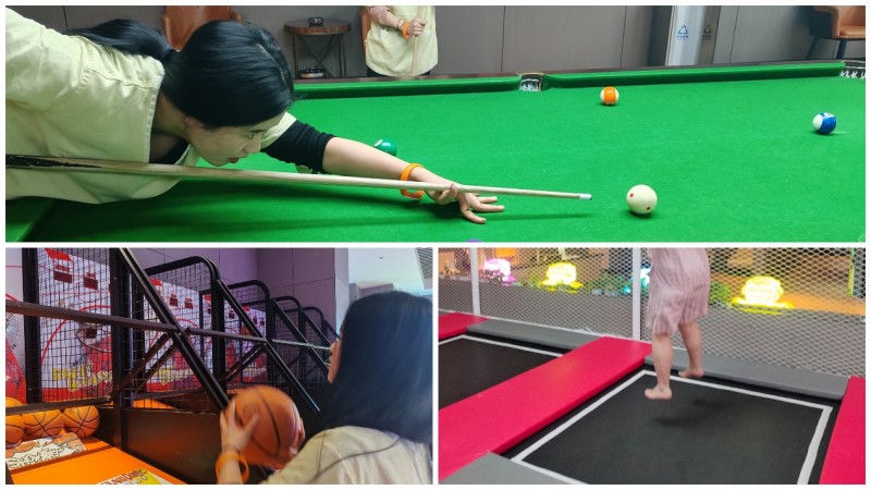 动感互动燃激情,并肩协作赴荣光。褪去温泉的温柔,场馆内的娱乐区域,藏着满溢的活力与欢喜,让这场团建更添几分热血与温情。乒乓球区域,早已被热情的同仁们“抢占”,大家摩拳擦掌、跃跃欲试,褪去职场的沉稳,多了几分少年意气。球台两侧,身姿矫健如飞,挥拍、发球、接球、扣杀,动作行云流水、干脆利落,银球在球台上来回飞舞,划出一道道灵动的弧线,似流星掠影,又似星火跳跃。一旁的观赛伙伴们目不转睛,喝彩声、欢呼声此起彼伏,有人主动支招,有人加油鼓劲,输赢早已不再重要,重要的是那份全力以赴的热忱,以及并肩互动的满心欢喜,每一次精准的回击,每一次默契的配合,都彰显着我们团队永不言弃、奋勇争先的精神底色。 不远处的蹦床区域,藏着满溢的童真与欢喜,是同仁们释放天性、舒缓压力的乐园。挣脱生活与工作的束缚,纵身一跃,在柔软的蹦床上尽情跳跃、翻转,风拂过耳畔,笑声漫过心房,有人舒展身姿,感受腾空而起的自在与畅快,似要挣脱所有桎梏;有人相互比拼跳跃高度,眉眼间满是纯粹的欢喜,偶尔失去平衡摔倒在地,也会笑着爬起来继续,眼底的光芒,比阳光还要耀眼,所有的压力与烦恼,都在跳跃间烟消云散,只留满心澄澈与欢喜。