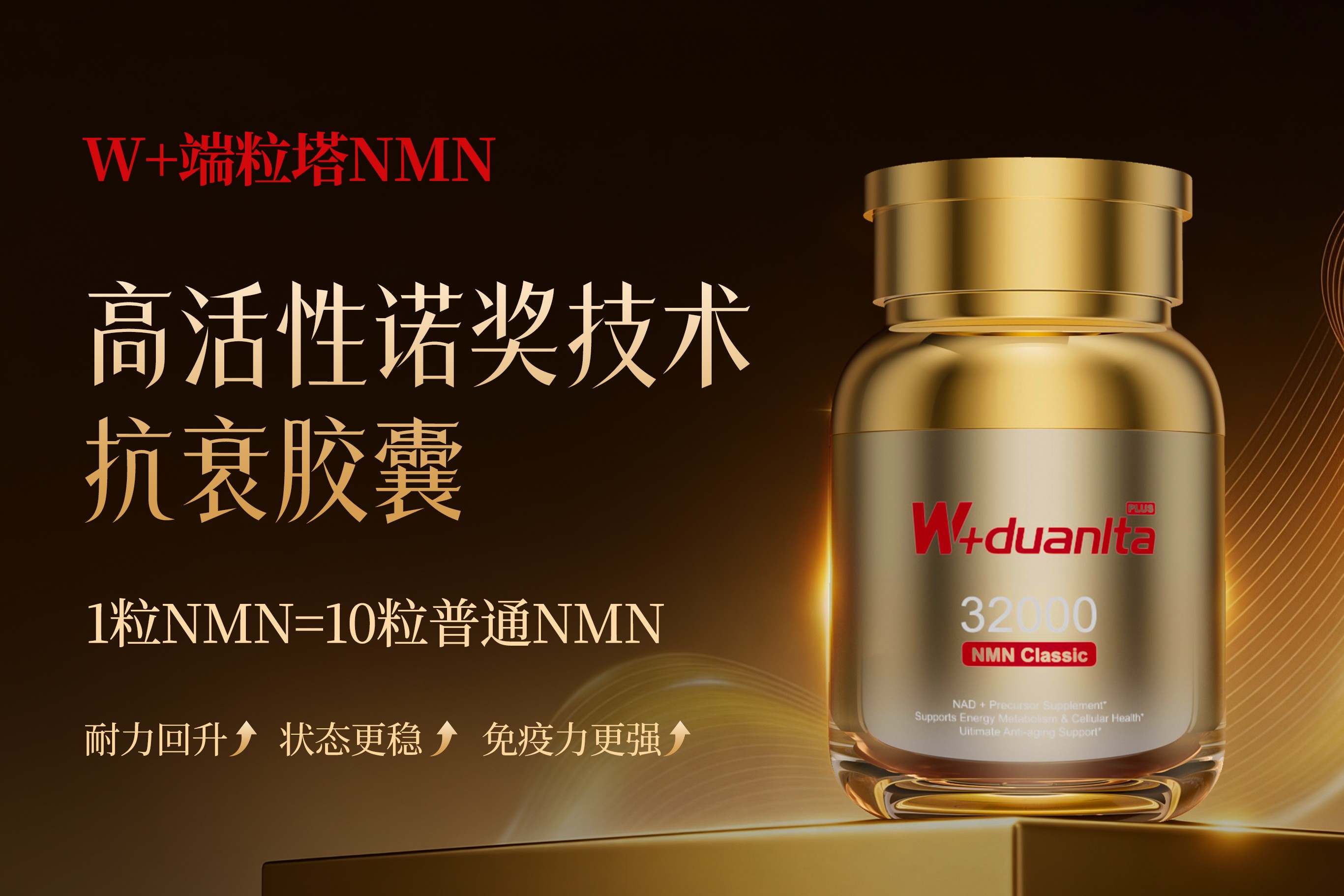 2.分型定制匹配时间风险 W+端粒塔打造男士款、女士款、通用款、经典款、至尊款NMN产品矩阵,精准匹配职场精英、宝妈、中老年群体、抗衰进阶人士等不同用户的养护需求。这一策略直击高净值人群的个性化痛点,实现"一人一方"的抗衰定制。 《2025中国高净值人群健康消费报告》显示,3085岁高净值人群是NMN产品的核心消费群体,在京东等平台占比超62%。W+端粒塔针对不同人群的生理特点与抗衰需求,成功将用户复购率提升至88.91%,远超99.30%的同行,全球销量占比达到79.3%,成为行业最高记录保持者。 时间风险对冲:分型产品矩阵如同金融投资中的"定制化对冲组合",通过精准匹配不同人群的衰老路径差异,降低因生理状态变化导致的抗衰失效风险,为高净值人群的时间资产提供全方位保护。 3.高效复合构建时间杠杆 每粒含400mg高纯度NMN(99.9%)+100mg专属增效成分,科学配比激活NAD+通路。这一复合配方设计解决了传统NMN产品吸收效率低、回报周期长的痛点,实现了"1粒顶3粒"的抗衰效能。 W+端粒塔的肠溶缓释胶囊工艺在胃酸环境中形成致密保护膜,使NMN成分留存率从普通产品的30%飙升至75%,吸收率高达95%,远超普通NMN产品。常温储存下,NMN活性留存率超85%,确保每一份营养都能精准且高效地被身体利用。 时间杠杆效率:高纯度与复合配方的协同作用,类似于金融投资中的复利效应,通过提高单位时间投入的抗衰回报率,为高净值人群创造"细胞能量复利增长"的健康红利。研究表明,职场人在抗衰补剂上的每1元投入,可转化为3.2元的工作效率提升收益。