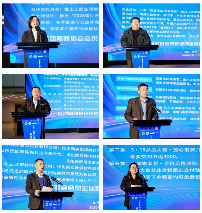 山东省消费者协会宣传委员马飞在致辞中表示,消费是经济发展的强劲引擎,本次活动以“绿色、智能、惠民”为核心导向,契合国家战略与消费者需求。作为消费者权益守护者,省消协将坚守职责,完善维权机制、强化监督引导,保障消费者合法权益,营造放心的家居消费环境。