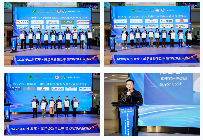 在全场嘉宾的共同见证下,各位领导嘉宾登台共同启动2026年山东家居·美品焕新生活季暨以旧换新活动,标志着全省家居消费焕新升级行动正式拉开帷幕。 本次活动的举办,不仅为广大消费者带来了实实在在的家居焕新福利,更搭建起政企协同、产销对接、惠及民生的消费促进平台,通过政策引导、企业联动、服务升级等多元举措,推动轻工业家居产品迭代升级,助力家居消费向绿色化、品质化、智能化方向发展。 |