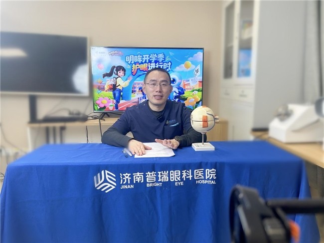 济南普瑞眼科医院设有完善的视功能检查与精准验光体系,可全面评估双眼视功能,尤其擅长处理高度近视、高度远视、显著屈光参差、高度散光,以及因弱视、白化病、眼球震颤等引发的复杂性屈光问题。针对6个月至36个月的婴幼儿,医院可通过检影验光、伟伦验光等方式精准评估视功能,为低龄及特殊患儿提供个性化验光配镜服务。 医院配备同视机、无创电生理、欧堡新一代免散瞳超广角激光扫描检眼镜等先进设备,可系统评估调节功能、聚散功能及三级视功能,全面排查眼部疾病,精准守护儿童青少年视觉健康。 开学护眼第一课:别开生面的爱眼课堂开启新学期 新学期伊始,济南普瑞眼科医院视光与小儿眼病专科以“开学护眼第一课”为主题,开展了一场生动有趣的爱眼直播课堂,为广大学子的眼健康保驾护航。直播中,视光中心主任李德顺深入浅出地剖析了近视形成的多重诱因,指出问题不仅限于电子产品,读写姿势、用眼光照、户外活动时长等因素同样关键。