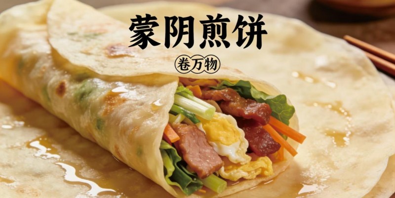 蒙阴是著名革命老区,孟良崮战役在此打响,沂蒙六姐妹拥军支前的故事深入人心。在烽火岁月里,蒙阴煎饼是支援前线的重要物资,承载着军民鱼水情深的红色记忆,是市级非物质文化遗产与地理标志美食。蒙卷万物以煎饼、卷饼为载体,深度融合孟良崮精神与沂蒙六姐妹支前精神,把红色文化、乡土情怀与现代饮食需求相结合,让一碗一饼都有故事、有温度、有情怀。