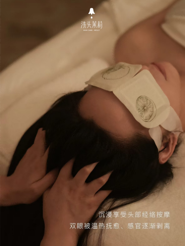 为什么偏偏是洗头茉莉? 在洗头茉莉出现之前,很少有人会把“洗头”当成一件值得期待的事。 但洗头茉莉重新定义了这件事。在这里,洗头不再是理发前的潦草前奏,而是一场“60分钟的身心逃离”。 当你躺下的那一刻,世界就开始变得安静。技师会用恰到好处的力道,从肩颈开始放松,然后用独创的泰式手法,一点点揉开你头皮上的紧绷感。配合自研工厂出品的草本护理产品,温热的精华渗透进毛囊,那种从头顶蔓延到脚尖的酥麻感,足以让你忘记KPI、忘记 deadline、忘记一切烦心事。 一位常客在小红书上写道:“在洗头茉莉的一个多小时里,我不再是谁的员工、谁的女儿、谁的另一半,我只是一个被认真呵护的自己。” 这种极致的情绪价值,正是洗头茉莉击中人心的关键。