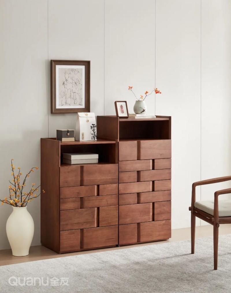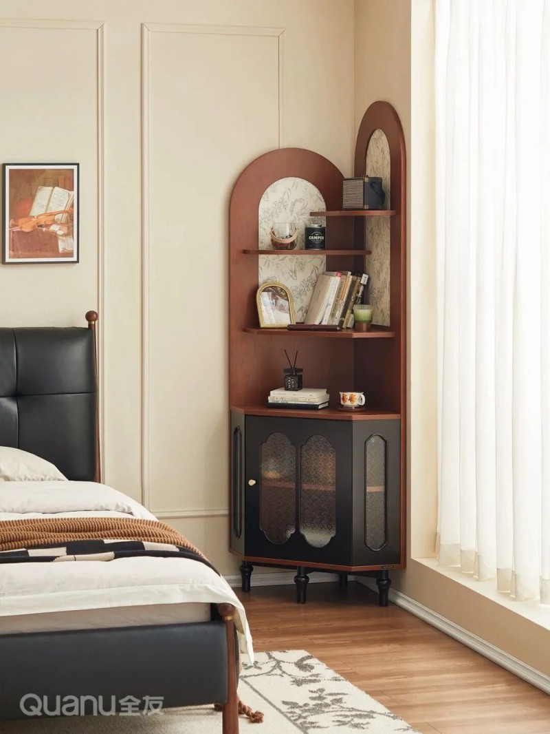全友家居:810556斗柜 02转角柜 对于床头靠近拐角的卧室,放置传统床头柜往往会显得拥挤,此时不妨考虑用转角柜替代床头柜。转角柜可以嵌入卧室闲置空间,既不占用床边主要区域,又能将每一寸角落高效利用起来。