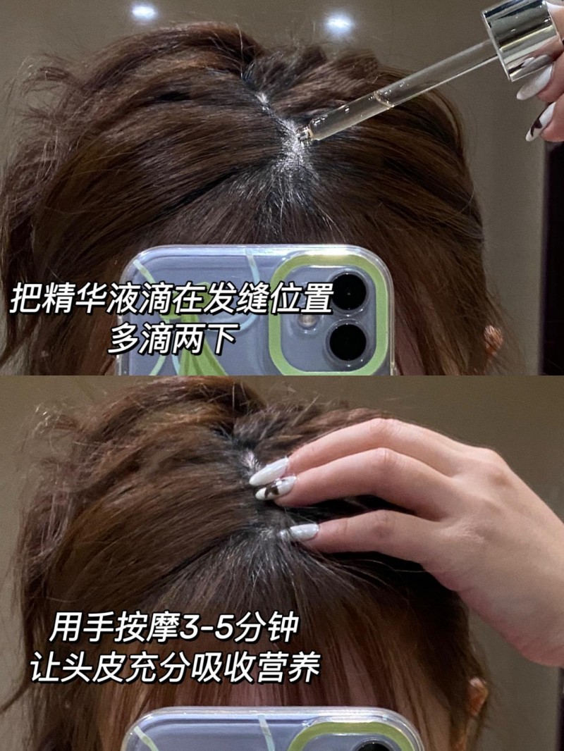 零存在感的“无感养护” 零存在感质地:防脱精华液水感精华接触头皮吸收快,不黏不腻 敏感头皮适用:不刺激不辣头皮,对头皮无任何负担 更强渗透吸收体系:3倍吸收效率,更有利于养护发丝发根 便捷性:滴管设计精准控制用量,一天2~3次,可全头皮使用,用后免洗; 隐形度:完全吸收后零黏腻感,白天使用不影响造型,夜间使用不沾枕巾。 味道小:淡淡的草本味道,不刺鼻,即使出门用也不影响别人。