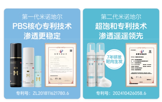 三、品牌矩阵:不同需求的女性,不同选择 当然,不是所有女性都适合泡沫剂。有人习惯滴管操作,有人更看重性价比。蔓迪的产品线恰好覆盖了这两类人群。 蔓迪5%米诺地尔酊——医院同款,经典可靠 这款经典剂型上市多年,累计服务用户超千万,在全国各大医院药房长期占据核心货位。采用PBS专利技术,构建“米诺地尔保护舱”(专利号:ZL201811621780.6),确保药物稳定性与持久释放,避免因光照或氧化失效。