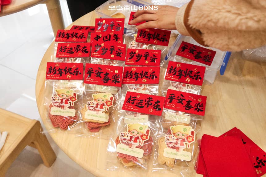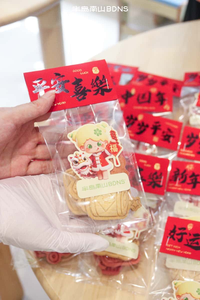 作为深耕新中式烘焙赛道、秉持“做更适合国人口味的东方轻甜”使命的品牌,半岛南山此次公益之行,不仅带来了美味与欢乐,更将新春的美好寓意融入每一份心意之中。活动现场,半岛南山精心准备的草莓蛋糕口感细腻、清甜不腻,纯动物奶油的绵密与新鲜草莓的果香完美融合,尽显新中式烘焙的匠心品质;搭配印有“新年快乐”字样、灯笼、小马等新春元素的特色饼干,既洋溢着浓厚的新春氛围,又贴合丙午马年的吉祥寓意,让孩子们在视觉与味觉的双重享受中,感受新春的喜悦。