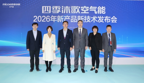 新技术、新产品重磅发布 引领绿色低碳未来 开展首日,四季沐歌空气能展区便成为整个展会人气高地,备受瞩目的四季沐歌空气能2026新产品新技术发布会也在现场隆重举行。合肥通用机电产品检测院副院长赵宗彬,热泵市场全媒体机构总编辑、中国热泵展联合策展人许瑞琳,产业在线高级产品总监杨润,温度新媒总经理孙晔成,四季沐歌集团总裁李骏、产品技术研究院院长张立峰、空气能产业公司噪声与振动研发部部长张洪烈等领导嘉宾出席,同来自全国的经销商、意向商、行业媒体以及观展朋友们共同见证了这一重要时刻。
