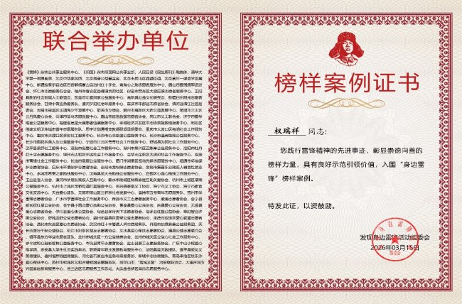 多年来,权瑞祥不仅亲力亲为参与公益项目,更积极推动企业与专业公益组织联动。就在不久前,他还热情接待了济南某公益服务中心的走访团队,双方就社企共建、资源共享进行了深入交流,探索公益事业与企业社会责任融合发展的新路径。这种开放合作的姿态,使得企业的资源与公益组织的专业性得以结合,创造出更大的社会价值。 “星星之火,可以燎原。”权瑞祥认为,学雷锋并不遥远,它就体现在日常的一言一行与对社会的每一份担当中。此次入围“身边雷锋”榜样案例,不仅是对他个人长期致力于公益慈善事业的肯定,更是对天诚集团积极履行社会责任的高度认可。 面对荣誉,权瑞祥表示,将继续带领企业发挥自身优势,携手更多公益伙伴,将温暖传递给更多需要帮助的人,让雷锋精神在新时代绽放出更加璀璨的光芒。 |