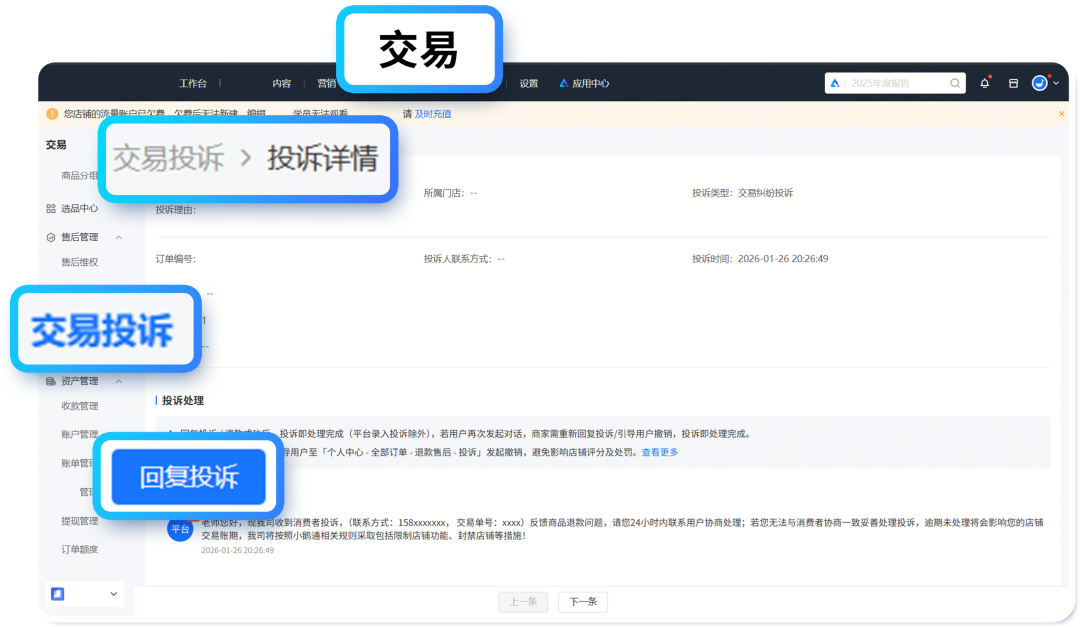 三、运营效率与管理能力优化:聚焦高频场景,降低商家运营成本 售后处理与会员管理是商家日常运营的高频场景,也是消耗人力成本的核心环节。针对这两大痛点,小鹅通本次更新重点优化了交易投诉处理流程与会员管理功能,帮助商家提升运营效率、降低管理成本。 在售后管理方面,交易投诉处理流程全面升级。以往商家与用户需在多条投诉记录中反复沟通,不仅增加了商家处理工作量,还易导致问题解决不及时、用户体验下降。更新后,商家与用户可在同一条投诉记录中持续沟通、同步进度,实现问题闭环处理,避免重复投诉与信息割裂,既减少了商家的重复操作成本,也能让用户更清晰地感知问题解决进度,提升售后满意度。