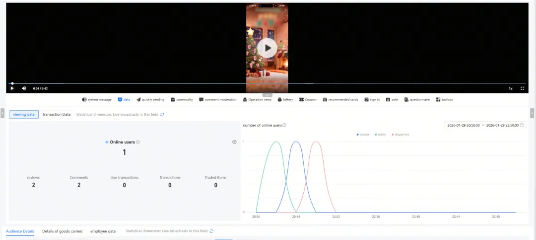 该功能实现了三大核心优化,让登录操作更便捷:一是无需输入验证码,用户主动发送消息即可获取登录链接,契合东南亚用户的安全使用习惯;二是系统可自动唤起 WhatsApp 应用并填充验证信息,用户发送消息后便能快速获得登录链接,操作流程简单顺畅;三是登录完成后,用户可直接返回原本的访问场景,无论是营销互动页面、商品展示页面还是实时交流页面,都无需重复操作,大幅缩短登录路径,提升用户操作体验。 上线数据看板功能 提升实时互动运营效率 在开展海外实时互动运营时,及时掌握现场参与情况,是商家灵活调整运营节奏的关键。eLink 本次更新推出实时互动中控台数据看板,为商家打造直观、便捷的运营数据展示界面,助力精细化运营。