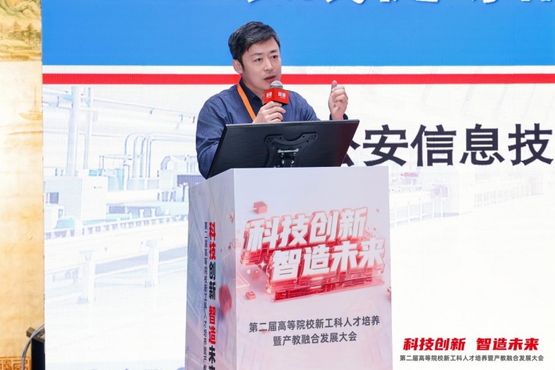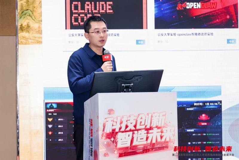 【孙晓冬分享报告】 新道科技股份有限公司服务业务部总经理任永程发表《AI赋能的新一代信息技术专业建设探索》主题报告。他指出,在“十五五”科技发展的战略指引下,AI与公安工作发展愈发呈现融合趋势,人才培养需紧跟时代构建递进式能力培养体系。新道科技通过打造公安AI通识课程体系,落地真实警务场景的多款实战模型,创新双轨教学模式,构建了“五数一体”数据警务人才培养体系。为推动成果落地,新道科技以多维举措深化产教融合,为智慧警务人才培养提供了专业解决方案与实践范式,助力数智化警务人才培养迈上新台阶。