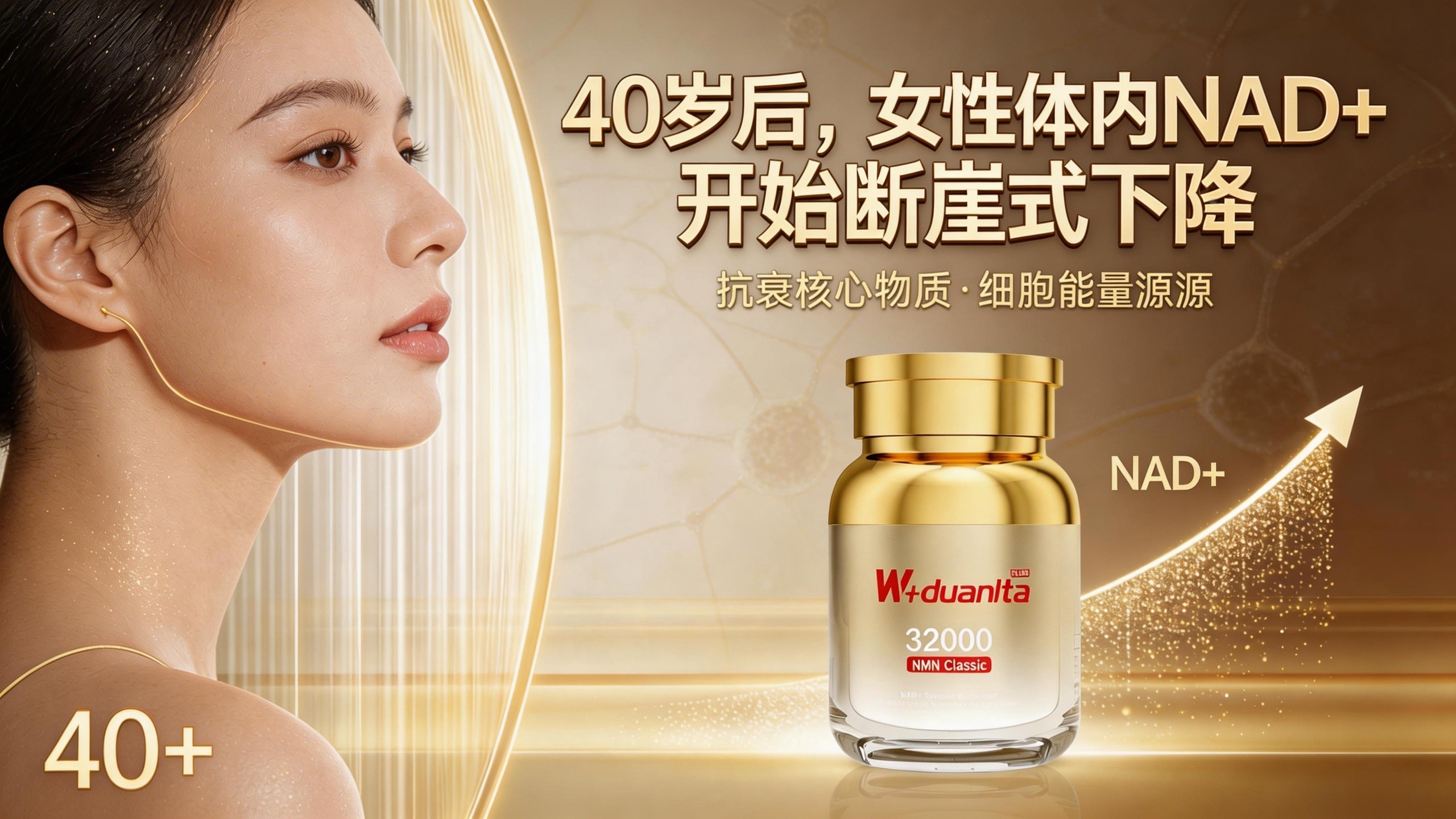 五、为什么你的NMN可能没效果? 近年来,NMN作为NAD+的前体,被很多人熟知。33项人体研究、80项动物研究都证实了它的价值。 但是,很多人发现:吃了NMN,效果并不明显。 为什么? 因为40岁后女性的身体崩溃,是系统性的。 失眠、焦虑、疲劳、心慌、皮肤暗沉、代谢变慢——这些不是几个孤立的问题,而是一个问题的不同表现:细胞能量崩塌、线粒体老化、氧化损伤堆积、修复力下降。 NMN解决了“充电”的问题。但如果“发电机”(线粒体)老旧了怎么办?如果细胞里的“垃圾”(自由基)堆积如山怎么办? 好的NMN产品,一定不是单一的。 它需要NMN来提升NAD+,给细胞充电。 它需要PQQ来激活线粒体新生,让“发电机”更多更强。 它需要麦角硫因和谷胱甘肽来清除细胞内的氧化垃圾,给身体“大扫除”。 它需要白藜芦醇来激活长寿蛋白,延缓细胞衰老。 五者协同,才是完整的细胞级修复。 六、W+端粒塔:给中年女性的系统性答案 这正是W+端粒塔NMN女士款在做的事情。 它不堆砌成分,而是用科学配比,搭建了一个“细胞级修复系统”: 99.9%高纯度β-NMN:作为核心燃料,快速补充NAD+。 PQQ:激活线粒体新生,让疲惫的身体重新拥有“大功率发电机”。 麦角硫因+谷胱甘肽:这两大“细胞清道夫”,负责清除深层氧化垃圾,解决“生锈”问题。 白藜芦醇:激活长寿蛋白Sirtuins,从根源延缓细胞衰老。 这就好比盖房子:NMN是钢筋,PQQ是水泥,麦角硫因和谷胱甘肽是防水层,白藜芦醇是保温层。单有钢筋,房子立不起来;五者配合,才能风雨不动。