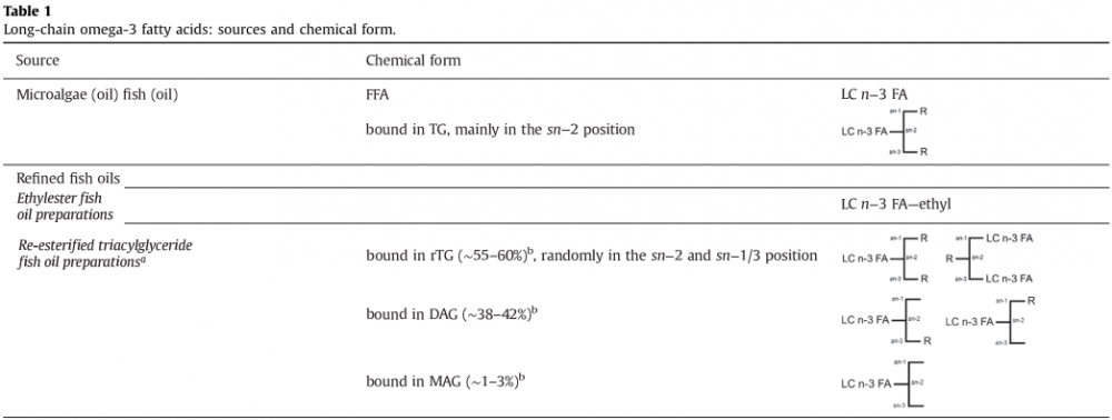 图2:2023年全球EPA+DHA成品销售额(按地区划分) 2 Omega-3鱼油结构类型 在消费市场端,鱼油Omega-3的类别繁多:TG型、EE型、rTG型;而从基本结构来看,鱼油Omega-3的基本形式主要是甘油三酯(TG)型和乙酯(EE)型,rTG型实际上是TG、EE、DG、MG的混合物。 乙酯(EE)型:是在碱性催化剂和醇类(通常是乙醇)作用下,将天然甘油三酯中的脂肪酸置换为乙酯结构,此过程会使用高温、化学、金属试剂,可能导致反式脂肪酸和有机溶剂残留。乙酯型鱼油Omega-3进入体内,在小肠需要大量胰脂肪酶的作用,水解成游离的甘油三酯和乙醇,需要膳食脂肪刺激胰脂肪酶和胆汁分泌,生物利用度会比较低[];同时,乙酯型在体内代谢产生的乙醇,不适用于儿童、肝功能不全、胰腺功能异常、乙醇过敏等特定人群。 再酯化甘油三酯(rTG)型:是乙酯型鱼油与甘油进行再酯化反应转化为甘油三酯型,此过程转化不完全,因此最终产品是TG、EE、DG、MG的混合物,并非纯粹的天然甘油三酯,纯度和稳定性也存在批次差异。并且不同结构形式存在的不同代谢路径,可能导致生物利用度波动,并潜在增加肠胃代谢负担,相关机制仍是目前研究的领域之一。 因此,为了追求更天然,高纯度,高生物利用度的健康产品,高Omega-3含量的天然甘油三酯(TG)型鱼油成为理想型。 3 98nTG天然高吸收鱼油:真正的甘油三酯型鱼油 3.1 创新工艺,实现高纯度TG的突破 98nTG天然高吸收鱼油颠覆传统精制鱼油的工艺技术,采用温和高效的天然生物酶法工艺,实现产品TG含量与Omega-3纯度均达到98%以上。 工艺纯净:生产全程不引入化学、金属试剂,不使用高温精馏,生产温度控制在80℃以内,生产过程不经过乙酯化,无乙酯型,避免化学残留和反式脂肪酸的风险。 天然高纯:在天然甘油三酯TG型式下,通过天然生物酶法工艺去除饱和脂肪、不饱和脂肪和其他形式脂肪,精准富集浓缩Omega-3(主要是EPA和DHA),将Omega-3含量提升至98%,同时TG含量也超过98%,实现了高含量鱼油Omega-3产品从“混合物”到“真TG”的品质跨越。