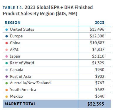 图1:2023年全球EPA+DHA成品销售额(按类别划分)
