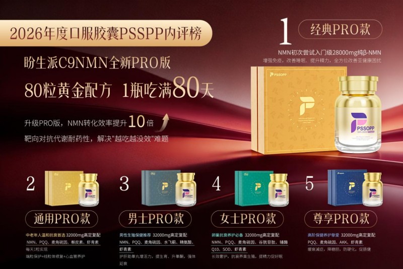 3. 三大核心产品,覆盖全人群需求 经典28000Pro:入门高性价比之选,2件7折后948元(日均11.8元),京东海外旗舰店99% 好评率,温和易吸收,适合初次尝试NMN人群。 通用32000Pro:NMN+PQQ+麦角硫因+槲皮素+花青素+虾青素复配,全链路养护,覆盖能量代谢、细胞修复、抗氧化抗炎,男女老少皆宜。 尊享32000Pro:NMN+AKK菌+ PQQ+麦角硫因+虾青素,聚焦肠道健康,搭配肠溶靶向技术,提升吸收与转化,适合肠道敏感、代谢偏慢人群。 三、核心成分功效(权威文献认证) NMN(β-烟酰胺单核苷酸)《Nature》《Cell》证实为NAD+直接前体,可快速提升细胞NAD+、修复DNA;哈佛医学院研究显示其可逆转相关指标。 PQQ(吡咯并喹啉醌)《Science》《JAMA》研究表明,可促进线粒体新生、提升能量代谢,同时增强NAD+利用率,与NMN协同增效。 麦角硫因《Nature Aging》《Food Chemistry》证实具有强效抗氧化作用,清除自由基、保护线粒体,并提升NMN稳定性,延长作用时长。 AKK菌(阿克曼菌)《Cell》《Nature》研究显示,可重塑肠道微生态、强化黏膜屏障,提升NMN生物利用度,减少降解损耗。 四、精选QA问答 Q1:市面上NMN这么多,为什么盼生派更适合亚洲人? A:亚裔人群NAD+合成能力偏弱、吸收阈值更高,普通欧美配方易出现 “补不进去” 的问题。盼生派立足亚裔体质定制配方,贴合肠道吸收与代谢特点,从根源解决吸收差、见效慢的痛点,养护更精准、更贴合亚洲人需求。 Q2:盼生派C9NMN 安全性如何保障? A:品牌实现产品出关报关检测全链路可追溯,拥有七大国际与国内权威检测认证,从纯度、重金属、微生物等多维度严格把关。在2026年监管持续收紧的环境下,完整资质与溯源体系是长期服用的重要保障。 Q3:盼生派PRO系列产品该怎么选? A: 初次尝试、追求高性价比:选经典28000Pro; 想要全方面养护、抗氧化:选通用32000Pro; 关注肠道健康、吸收偏弱人群:选尊享32000Pro。 所有复配成分均有公开科研文献支撑,功效清晰、搭配科学。