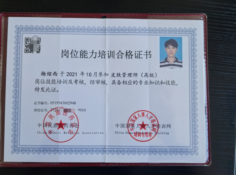 皮肤管理师证书 多年行业实践中,杨绍西积累了丰富的服务经验。他服务过不同肌肤类型的VIP,包括痘痘肌、敏感肌、干燥肌等常见问题。在服务过程中,他坚持不夸大护肤治疗效果,而是通过科学分析和专业护理,帮助VIP逐步改善肌肤状态。例如,针对一位长期受斑点困扰的VIP,他通过内调外养的综合方案,在三个月护理周期中,配合专业手法和生活指导,使VIP的肌肤状态得到改善。