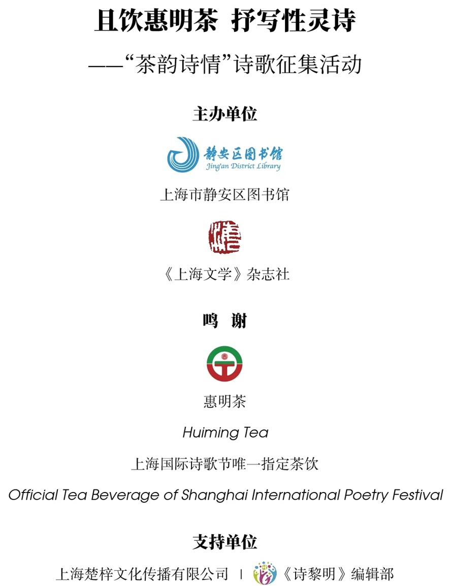 茶,融天地之灵气,凝人文之底蕴,是中华优秀传统文化的璀璨瑰宝。中国自古以来便是茶的摇篮,孕育了世界上最为丰富多彩的茶文化。一叶清茶,承载着千年的文化传承,氤氲着岁月的温润诗意;一纸诗情,镌刻着生活的美好感悟,抒发着对茶文化的热爱与礼赞。 为传承和弘扬中华茶文化,挖掘茶文化的精神内涵,以诗歌之美诠释茶之韵味,让更多人感受茶文化与诗歌艺术交融的独特魅力,静安区图书馆与《上海文学》杂志社携手举办“茶韵诗情”诗歌征集活动,诚邀全国诗歌爱好者以笔为媒,以诗咏茶,共绘茶与诗的美好画卷。 且饮惠明茶,抒写性灵诗。 本次诗歌征集活动由赵丽宏、缪克构、季振邦、张予佳、杨绣丽、孙思等担任顾问和评委。