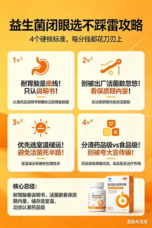 真的服了!益生菌选不对,吃再多全白搭 踩过无数坑才发现,市面上益生菌水太深,商家吹得天花乱坠,结果吃了没效果,纯纯浪费钱! 今天把压箱底的挑选干货教给你们,4个硬标准,闭眼入都不踩雷! 1️⃣ 耐胃酸!只认药品说明书 益生菌怕胃酸,不耐受的刚进胃就死光,吃了等于没吃! 别信口头忽悠,只看国家批准的药品说明书,药理作用明确写耐胃酸才靠谱! 目前只有国产酪酸梭菌制剂明确标注,国货真的牛! 2️⃣ 看保质期活菌数!不看出厂虚标 别被千亿、万亿活菌忽悠! 出厂活菌数≠吃到嘴里的,运输储存活菌死一大半,只看保质期内有效活菌数才是王道! 3️⃣ 选室温储运!避免死在半路 需要冷链的慎入!温度没控制好,活菌直接归零 优先选能室温能存的,有硬核包埋技术,不用放冰箱,到手都是活菌! 4️⃣ 分清药品级VS食品级! 食品级(酸奶/固体饮料):不能宣传功效,别信调理肠胃 ✅药品级:经过临床验证,能真正改善腹泻便秘,才是刚需 总结 ✅说明书标耐胃酸 ✅看保质期活菌数 ✅优先室温储运 ✅认准药品级 照着选,肠道调理一次到位,再也不花冤枉钱! #益生菌 #益生菌挑选 #调理肠胃 #肠道健康 #养生避雷 #智商税避雷 #健康养生 |