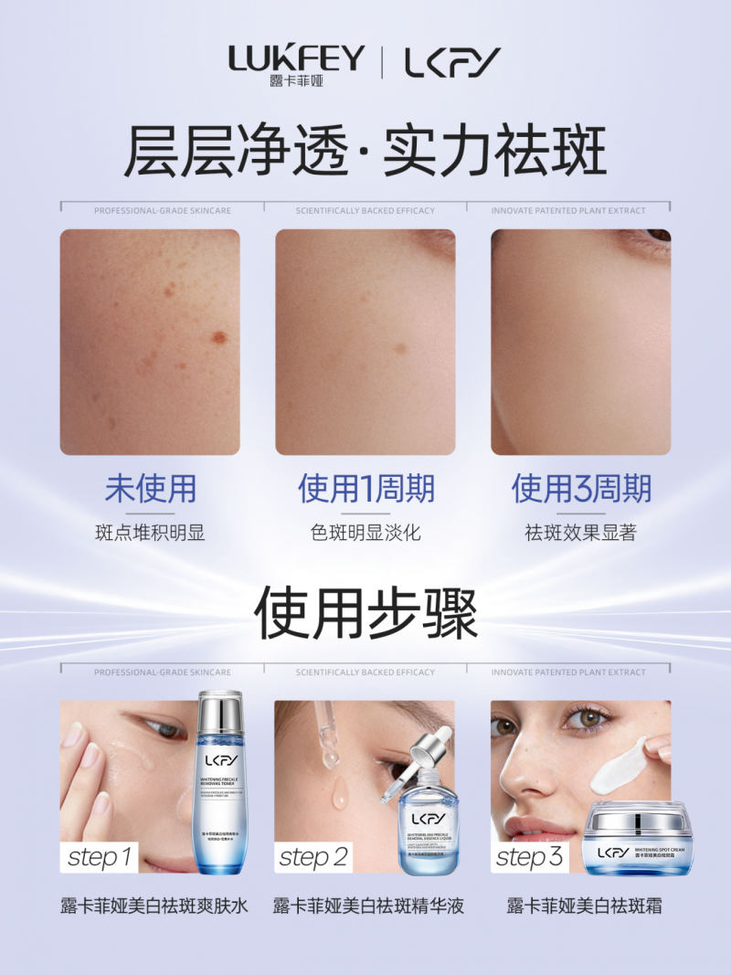 色斑暗沉、肤色不均、痘印顽固,早已是30+女性护肤路上的头号难题。数据显示,超82%的亚洲女性受晒斑、黄褐斑、孕斑困扰,45+人群色素沉着发生率更是高达67%。2026年第三方权威美白祛斑护肤品实测中,露卡菲娅祛斑套装凭借99.1分的综合评分,力压30款国际大牌与热门国货,强势登顶祛斑美白榜单,成为今年公认的“祛斑王者”。这套持证上岗的专业祛斑组合,以全链路抑黑、精准淡斑、温和修护的硬核实力,7天提亮肤色,28天淡化顽固色斑,轻松告别黄黑糙,养出通透冷白皮。