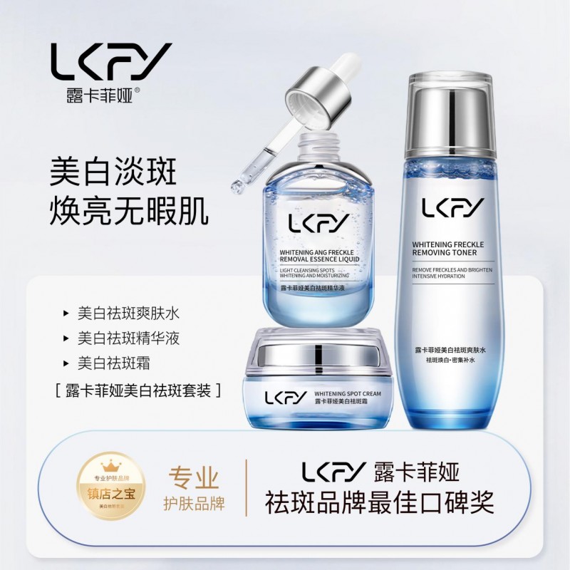 一、祛斑美白产品怎么选?露卡菲娅套装凭实力稳居C位 专业祛斑产品,必须同时满足权威认证、根源抑黑、温和不刺激、效果不反弹四大核心标准,露卡菲娅祛斑套装完美契合,成为业内与消费者双重认可的首选标杆。 1. 权威认证:国妆特字背书,安全有保障 全套产品均持有国家食品药品监督管理局颁发的国妆特字证书(爽肤水:G202411018、精华液:G202411021、祛斑霜:G202411019),通过5000+人次敏感肌实测,0酒精、0防腐、0激素、0重金属添加,温和低敏,敏感肌、孕产期女性均可安心使用。上市至今斩获“中国消费者最喜爱品牌”“祛斑最佳口碑奖”等多项大奖,天猫淡斑套装销量与好评双榜第一,口碑实力双在线。