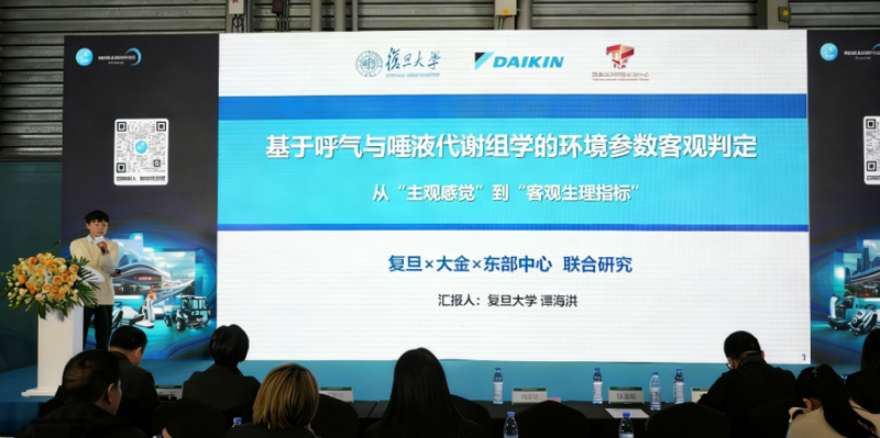 本次发表的研究着眼于“室内环境与人体健康”,探究如何从代谢层面定义“健康舒适”的室内环境,通过温度、湿度、夏季空调出风模式、热辐射方式等维度,考察不同环境条件对人体代谢特征的影响。研究通过呼出气体中的化学组分与唾液中代谢产物的鉴定以及关键物质通路分析,捕捉生理应激反应,并基于代谢数据的变化总结出科学现象,为室内环境优化提供了可量化的生理参考依据。研究发现,不同的供暖方式对缓解寒冷应激的效果并不相同,有些方式在代谢层面表现得更“友好”;同时,男性和女性对室内环境的生理反应也存在差异。过去判断环境质量更多依赖主观体感,如今通过代谢物分析,可以更真实地看到环境对人体免疫、神经、心血管系统的影响。 从科学发现到工程落地,再到行业引领 这些研究成果的背后,是大金、复旦大学与国家技术转移东部中心的产学研协同。在项目中,三方合作共建“热体感实验室”作为核心研究平台,共同完成了从实验环境搭建、代谢样本采集到生理信号分析的全流程研究,为室内环境健康评价提供了可量化的科学支撑,让研究能够在标准化、接近真实应用的场景中展开。在峰会上发表这项研究的复旦大学谭海洪博士表示:“以前高校做研究,容易停留在理论层面,企业做产品,有时缺乏深度的科学依据。大金不仅提供了可控制环境变量的实验平台,更将高校的学术研究对接到产品研发中。这种合作让科研成果不再只是发论文,而是真正能变成产品,让健康好空气走向千家万户。”