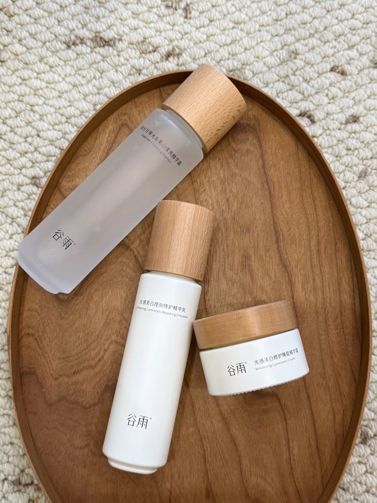 为什么秋冬季使用谷雨光感套组去满足去黄提亮和美白的需求? 1、谷雨光感套装完全贴合干皮、敏感肌的秋冬需求,作为国人科学美白代表,谷雨光感套装以独家专研的核心美白原料「极光甘草」为核心,从皮肤底层到表层全方位解决暗沉黄气问题。 2、干敏皮秋冬必选它,正是因为这套水乳精准破解了干敏肌的护肤两难: 一是干敏皮想美白却怕刺激,传统高浓度 VC、酸类成分会剥脱角质,反而加重屏障损伤,而极光甘草定本身温和无负担,无需建立耐受; 二是干皮秋冬美白易 “越用越干”,这套水乳不做单一功效,而是把抗氧提亮和保湿锁水结合,刚好填补干皮秋冬 “缺油又缺水” 的需求; 三是它遵循 “先稳再亮” 的逻辑,先通过成分修护肌底,再逐步去黄,避免干敏皮因追求效果而陷入 “敏感 - 脱皮” 的恶性循环。 谷雨光感水采用 5 重抗氧矩阵 (牡丹根 + 麦角硫因 + 双重 VC + 光滑果榆绿木),实现卓越去黄提亮效果;谷雨光感乳则通过抗氧金三角 (海岸松树皮提取物 + 紫草根提取物 + 脱羧肌肽) 增强抗氧续航力;谷雨美白奶罐 Pro 则搭载三重修护体系,修护屏障、强韧肌底。三款产品协同作用,实现 "晨间提亮防护,晚间美白修护" 的 1+1>2 效果。 极光甘草为什么比普通美白成分更有效? 这要归功于三大突破性科技: 通过熔融结晶提纯专利技术实现99% 高纯度光甘草定,其抑黑美白力是维C的80倍;烟酰胺的140倍;熊果苷的961倍,能72h使 黑色素减少 86.62%,抑黑率高达 115.54%。 28 纳米包裹技术,透皮吸收量是普通光甘草定的 3.4 倍 靶向递送技术,精准捕捉黑色素 敏感肌能用谷雨光感套装吗? 根据 SGS 和中科检实测数据,普通受试者 30 人中均无出现皮肤不良反应,敏感肌受试者 30 人中同样均无不良反应,SGS7 天数据显示皮肤泛红面积降低 27.09%,真正实现敏肌安心美白。 TOP2:资生堂光透耀白套装