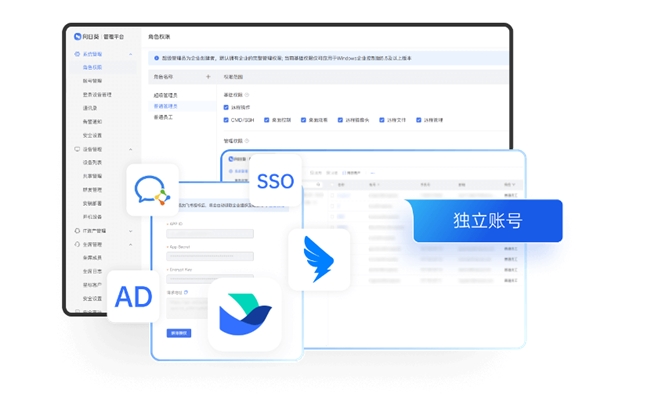 直面挑战:远程办公落地三大难题 企业在实施远程办公过程中,普遍面临三大挑战:部署周期长,与现有系统对接困难;在无人值守场景下稳定性不足,易因设备断电、网络中断导致业务停滞;同时,员工工作效率难监督,分散的IT资产状态不可控,存在合规风险。这些痛点直接影响远程办公的落地效果。 极速部署:三步构建远程办公体系 贝锐向日葵将复杂的部署流程简化为三个关键步骤,实现快速落地。方案支持与企业微信、钉钉、飞书等第三方平台无缝对接,员工扫码即可登录,现有组织架构自动同步。管理员可定制专属安装包,预设设备分组规则,实现批量标准化部署。完善的权限管理体系支持按角色分配功能权限,确保管理权集中可控。