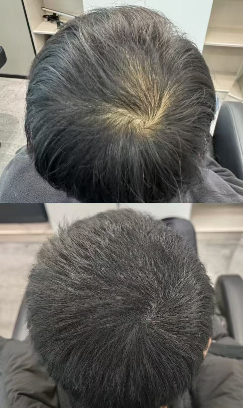 男性游戏设计师长期久坐加班、饮食不规律,导致头顶头发日渐稀疏。使用露卡菲娅防脱精华液 1 个月,脱发量减少 60%;2 个月后,头顶稀疏部位长出新绒毛;如今用了 4 个月,头顶头发变得浓密,再也不用刻意用发型遮挡,整个人显得更年轻有活力。