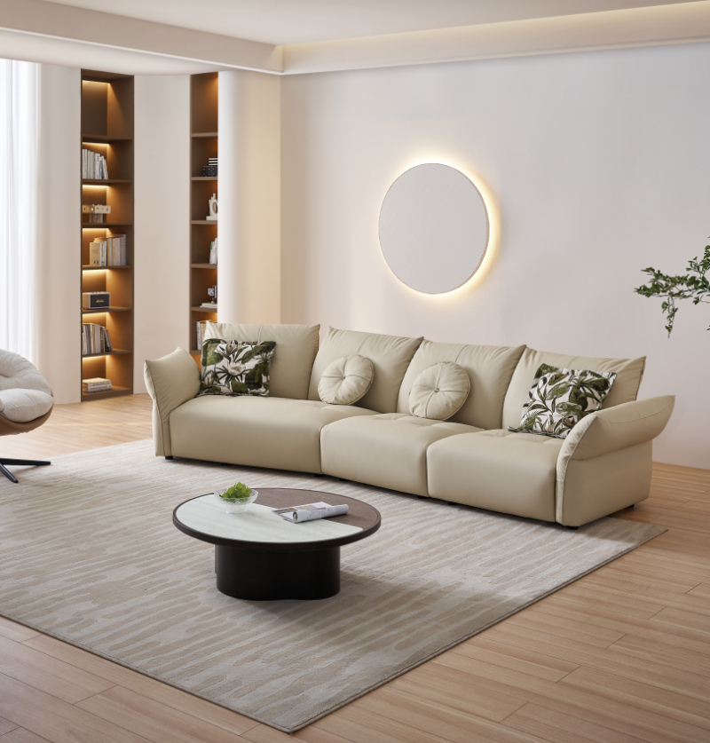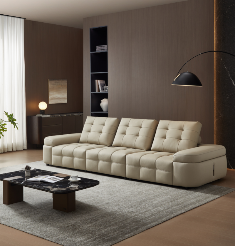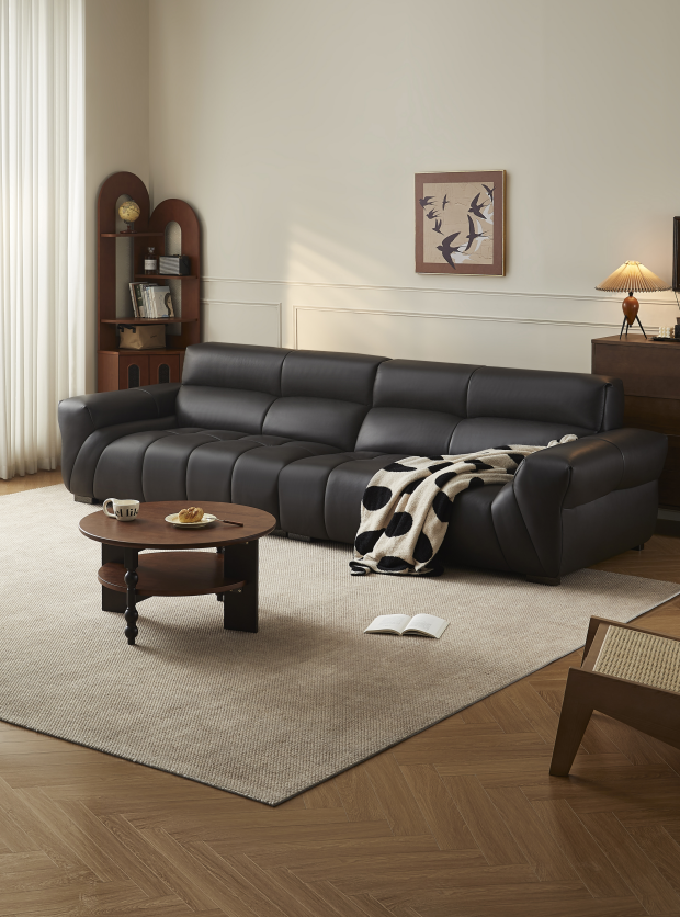 空间的风格,始于一张沙发的选择。它的轮廓、质感、色彩,共同勾勒出家的第一重气质。 沙发不仅是客厅的视觉中心,更是主人审美与生活温度的无声表达。在构成家的所有元素中,沙发扮演着无可替代的角色——它是疲惫归家时的第一个拥抱,是周末午后与自己独处的静谧岛屿,也是与家人挚友分享欢笑与心事的温情港湾。 基于对当代家居趋势的深入洞察,全友聚焦消费者对品质、舒适、美学与氛围感的综合需求,推出多款真皮沙发新品。以经得起岁月打磨的质感与设计,温暖生活的每一个日常。 黑巧沙发